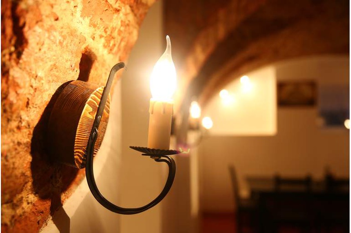 С этим пространством можно практически ничего не делать, оно и так впечатляющее. Стоит только выключить свет, и аккуратный лофт превратится в подвал с кирпичным низким сводчатым потолком и почти настоящими канделябрами на стенах. Ниши, колонны, галереи и переходы. Любые призраки будут рады погреметь здесь цепями.