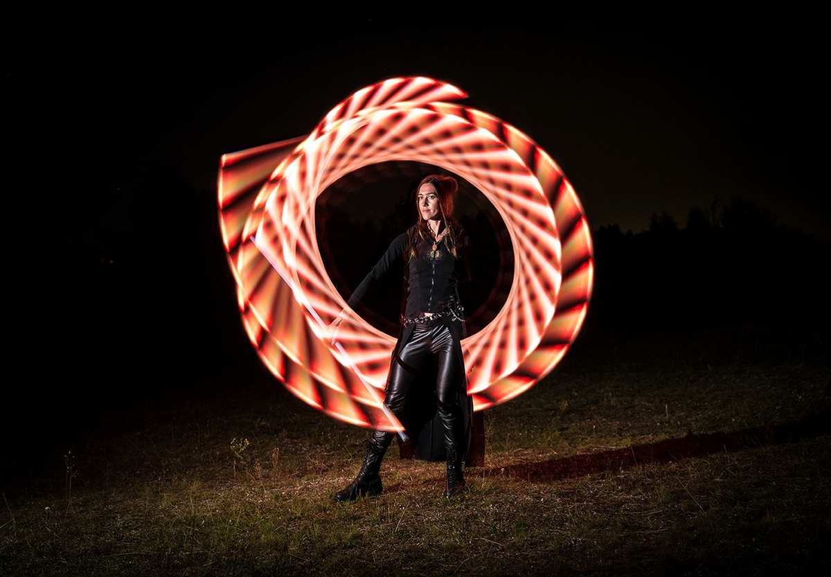 Фишка светового реквизита в возможности передать разные цвета и изображения. Если используется светодиодный реквизит, то при вращении остаются красивые разноцветные шлейфы. Если используется пиксельный реквизит, то зритель может видеть изображения, надписи, логотипы, фото. Можно поздравить человека с днём рождения, создав поздравительную надпись, а затем его фото. С помощью соответствующих изображений с разными узорами и спецэффектами можно создать атмосферу: торжественную, мистическую, или сказочную. У пиксельного реквизита есть очень много возможностей, а также есть своя градация в зависимости от количества пикселей - чем больше пикселей, тем более сложно-прорисованное изображение можно передать.