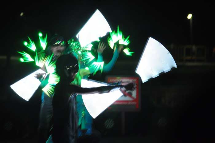 Световое шоу особенно востребовано с тех пор, как из соображений безопасности в помещениях запретили программы с огнем. И у артистов этого жанра много наработок. Световой реквизит - это часто тот же “огненный” реквизит, исполненный с помощью разных световых технологий. В световом шоу используются веера, пои - шарики на веревках или цепях, стаффы, даблы и драгоны - разные виды шестов со светящимися концами, бугенги - светящиеся полосы в форме буквы S, кубы, тетраэдры и любые другие конструкции, основанные на светодиодных модулях, лентах с обычными светодиодами, лентах с цифровыми светодиодами. Последние, кстати, гораздо надёжнее обычных светодиодов, имеют управляющую микросхему и используются для производства пиксельного реквизита, который дает возможность рисовать светом.