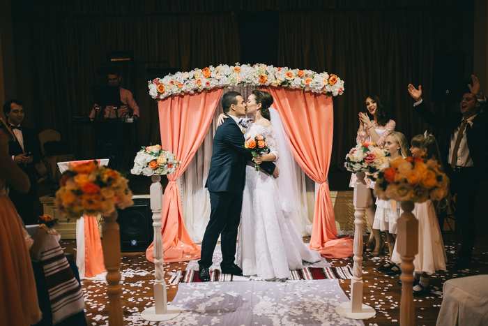или крышами. Выбор места зависит от количества гостей, от варианта рассадки, от стилистики мероприятия. От того, будет ли в том же месте свадебный банкет или фуршет. Иногда удобнее сделать все в одном месте, особенно, если гостей не так много. Иногда на регистрации гостям предлагают только велком-дринк, а основная тусовка проходит в другом месте. Нередки случаи, когда выездная регистрация, роспись в загсе и банкет и вовсе проходят в разные дни.