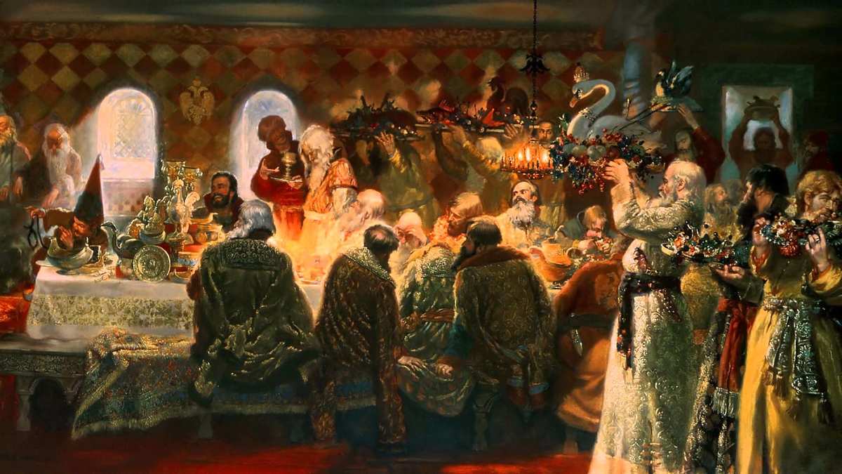 Наши далекие предки очень любили собираться и веселиться. В 17 веке вид активности был практически один и назывался он – пир. Да, тот самый "пир на весь мир" и "честным пирком, да за свадебку". А что делали на пиру? Правильно – пили. И само слово «пир» происходит от старинного глагола «пити». Пировали обычно в специальных помещениях – трапезных. А главной составляющей и главным же развлечением пиров были «мед» и «пиво». Как нам и рассказывают русские сказки. Конечно, на пирах еще и ели, причем, ели не слабо - жареные лебеди и осетры больше человеческого роста, несколько видов ухи и разнообразные пироги. Кстати, на пирах тусовались преимущественно мужчины, женщины, чаще всего ожидали в задних комнатах и выходили только по особому приглашению поприветствовать пирующих мужчин. Танцев на пирах не было, правда могли пригласить артистов из низших сословий – певцов или танцоров для развлечения гостей.