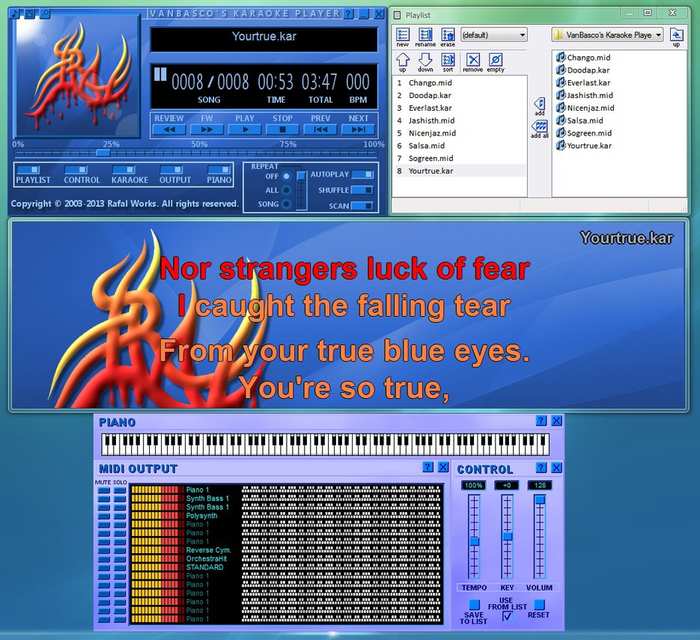 Использовать онлайн-караоке можно, естественно только если есть достаточно быстрый интернет. Если вы сомневаетесь в устойчивости сигнала с лофте, или хотите подстраховаться, закачайте на свой ноутбук специальные программы. Популярные плееры бесплатный http://www.gosing.com/. Более насыщенные в плане разнообразных примочек, но платные http://www.vanbasco.com/ и http://www.karaokekanta.net/. Для того, чтобы пользоваться такими плеерами нужно предварительно закачать на компьютер базу караоке-файлов.