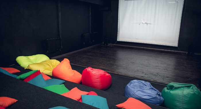 </p> <p>Площадка, специально предназначенная для просмотра кино и видео, стилизванная под зал кинотеатра. Есть интернет, проектор, изображение с которого можно спроецировать на большой экран или на черную стену. Звук 500 ватт. В зале можно положить цветные кресла-мешки или поставить стулья и обустроить до 50 посадочных мест. Есть кофемашина.