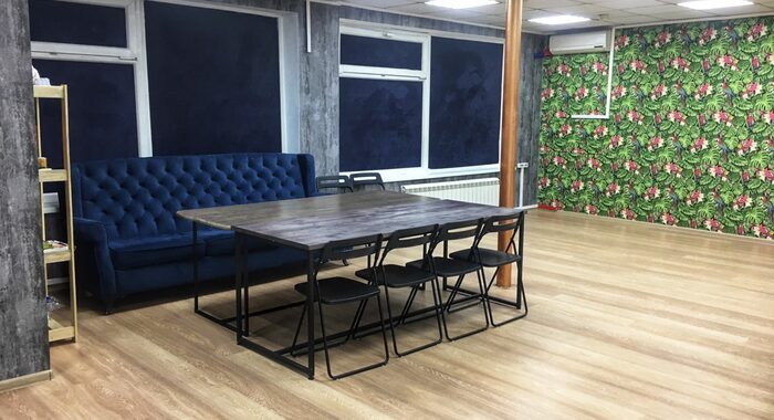 </p> <p>Лофт разделен на несколько локаций, одна из которых подходит для посиделок перед экраном и просмотра кино или любого другого видео. Удобно, что во время просмотра гости могут выходить в другие зоны и общаться, не мешая тем, кто состредоточен на видео. Экран здесь довольно большой 3Х2, есть безлимитный интернет, хороший проектор и звук. Из инфраструктуры – микроволновка, кулер для чая, любая посуда. В зоне с краном мест на 20 человек, размещение – диваны, пуфы, стулья.