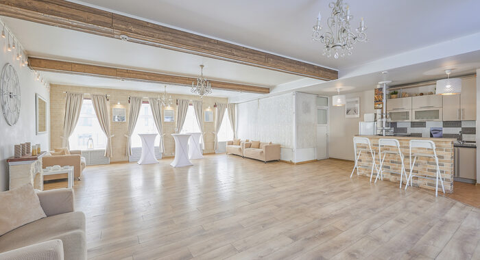 </p> <p>Этот светлый уютный утренний лофт вполне может превратиться для вашей компании в личный кинозал. При этом он не потеряет своей романтичности и уюта. Здесь вас ждет полноценная аппаратура. Экран 1,5Х2,5, проектор с качеством full HD, качественный звук (выход на пульт и колонки). Можно не только смотреть кино и спорт, но и петь караоке, все для этого имеется. В зале на диванах и стульях может разместиться до 50 зрителей. Есть кухонная зона, все для приготовления кофе-брейка, поп-корна и закусок.