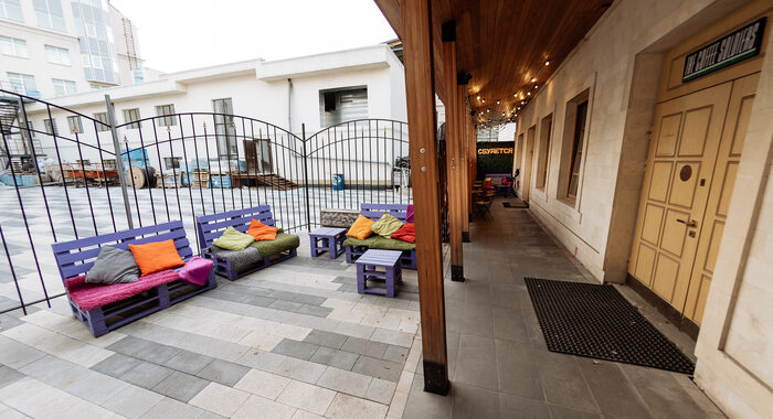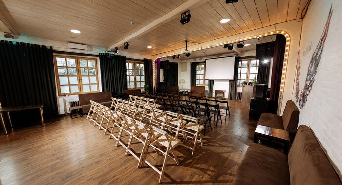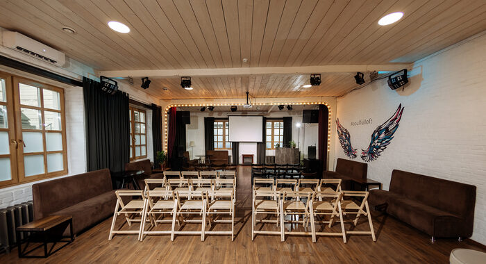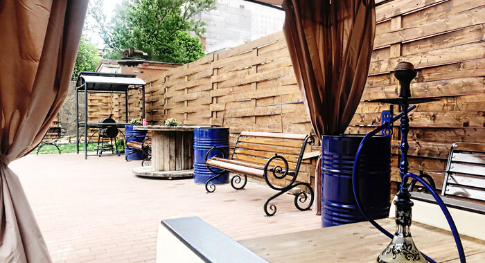 Площадка очень просторная, делится на зоны, и включает все, что нужно для комфортного пребывания от 15 до 60 человек. Есть свет, музыка, проектор – внутри, а снаружи парковка и мангал на углях. Мангал расположен во дворе, рядом с лофтом. Отдельно оплачивать его аренду не нужно. Администратор Дмитрий: «Гости могут сами готовить на нашем мангале, а также могут нанять у нас повара, стоимость его услуг за 7000 рублей за 7 часов работы». Площадка рядом с мангалом специально не оборудована, но есть возможность переместить все необходимое для вечеринки из лофта во двор.