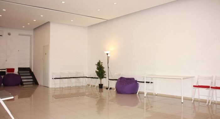 Светлый лофт с белыми стенами и удобным делением на зоны. Есть своя территория, которая дает возможность комфортно припарковать машину и организовать приготовление блюд на открытом вохдухе. Мангал для раположен во дворе, рядом с лофтом, пространство рядом с ним не оборудовано, как уличная площадка - для посиделок удобнее будет вернуться в помещение. При выборе этого варианта, стоит обратить внимание на то, что нужно будет принести свой уголь и шампуры (или решетку) - в лофте их нет. Повар или мангальщик здесь тоже не предусмотрены. Также стоит предварительно уточнить стоимость аренды мангала, и включена ли эта сумма в основную плату за аренду лофта.