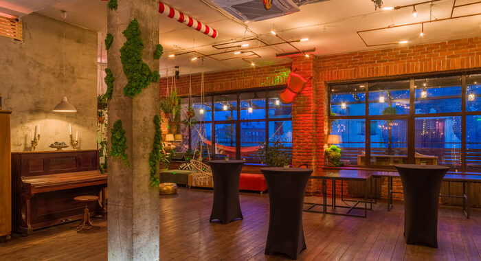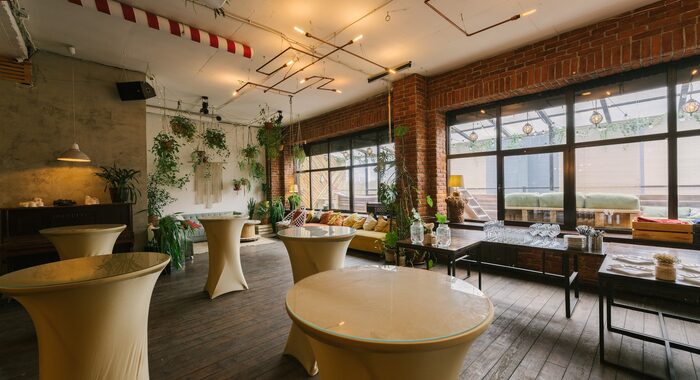 Просторный лофт для крупного мероприятия. Здесь может разместиться пара сотен гостей. Подходит для корпоративного мероприятия или современной свадьбы. В любом случае, вам может пригодится большая - 50 квадратов - полуоткрытая веранда-балкон и стоящий на ней газовый гриль, который легко решит вопрос угощения гостей. Воспользоваться грилем могут все гости. Аренда аппарата со всем необхордимым для готовки - 5000 за мероприятие. При этом в лофте есть различные пакетные предложения в которых гриль идёт как бонус. "Гости могут готовить сами, администратор поможет зажечь его, так же есть подрядчики готовые приготовить целое меню ориентируясь на гриль." - рассказывает менеджер лофта Александр.