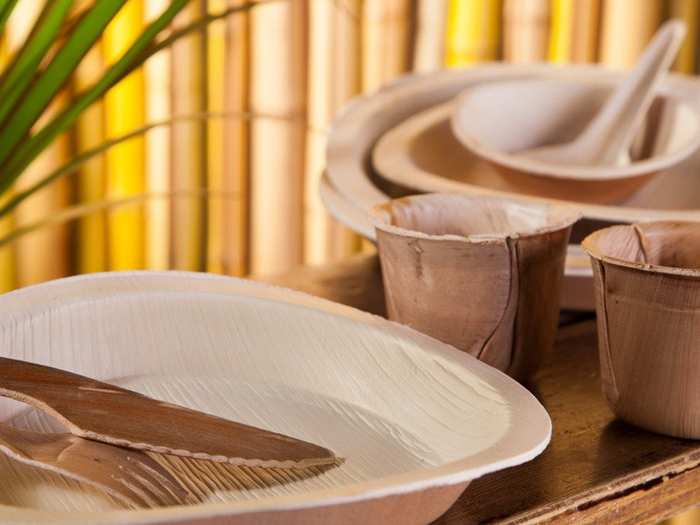 Посуда из прессованных листьев – один из самых популярных вариантов экопосуды. Несмотря на то, что делают ее не из березовых или кленовых, а из пальмовых листьев, купить такое чудо природосбережения можно и у нас. Сами пальмы растут в юго-восточной Азии. При такой технологии листья не измельчаются, а нагреваются и прессуются в целом виде. Посуда покрывается пищевым лаком и не только становится очень прочной, но и остается суперэкологичной.