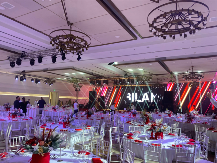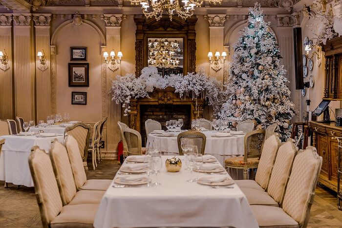 В ресторане есть восемь залов для различных мероприятий: от кабинета до мансарды. Основной зал под названием Ballroom вмещает в себя до ста гостей. Он очень светлый и оформлен в классическом стиле. Команда профессионалов подготовит зал для мероприятия. Личный менеджер решит все поступающие от клиента вопросы. Винная карта ресторана - одна из самых лучших в городе, а банкетное меню широкое и разнообразное. Стоимость банкетного меню - от 4900 рублей на персону.