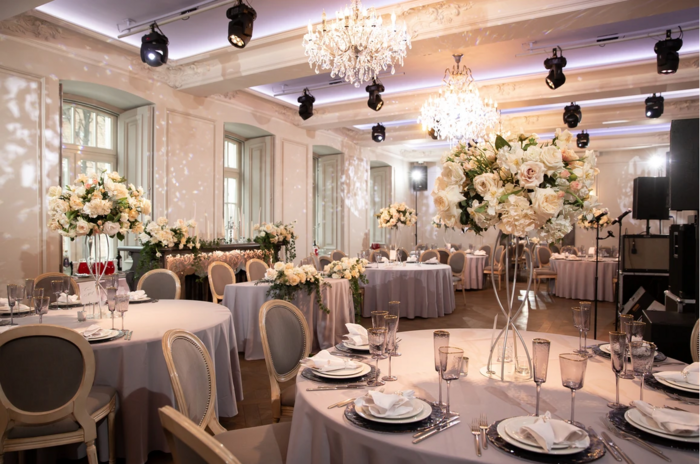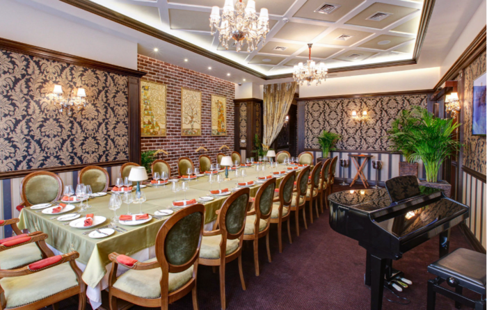 Один из самых известных ресторанов Москвы имеет четыре банкетных зала. Они, помимо своих уникальных интерьеров, имеют все необходимое для проведения роскошных банкетов.