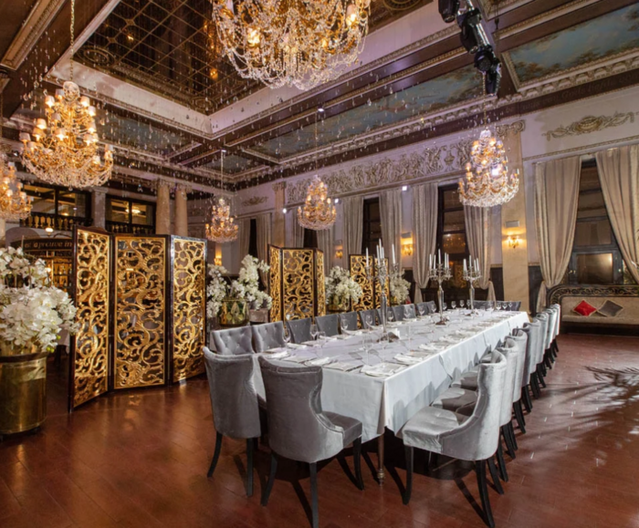 Зал расположен в особняке 1826 года. Интерьер оформлен английским дизайнером и вызывает восхищение всех гостей. В зале есть разные варианты рассадки и с комфортом можно разместить до 60 персон. На банкет можно приносить свой алкоголь и другие напитки. Стоимость проведения банкета - 3000 рублей. В эту стоимость входит аренда зала, профессиональная сервировка столов, аренда крыши ресторана с видом на Неву и город.