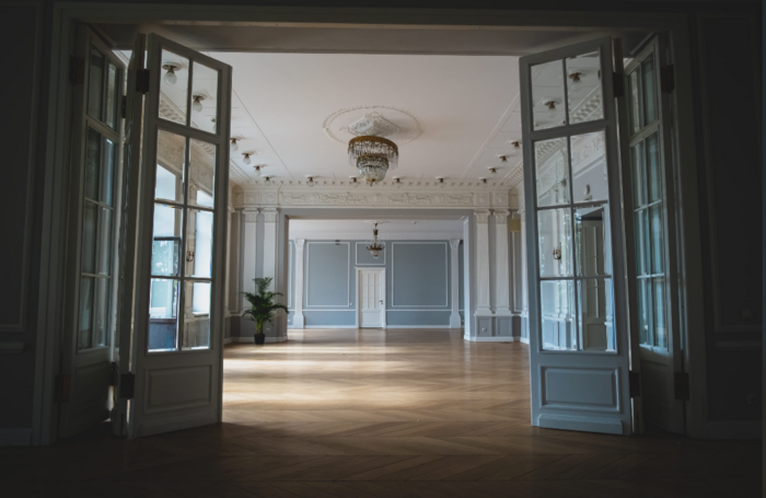 Пространство на втором этаже особняка Путилова с возможностью зонирования вмещает в себя до 120 гостей при банкетной рассадке. Общая площадь пространства - 273 кв.м. В прекрасном зале с лепниной есть камин, балкон с видом на пирс реки Малой Невки. На территории особняка можно проводить выездные свадебные регистрации и встречи гостей. Команда ответственных менеджеров с заботой о каждом гостей подходит к подготовке и проведению мероприятий. Стоимость аренды зала - от 130 000 рублей.