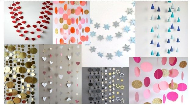 В последние годы стало модно украшать помещения потолочными гирляндами из бумажных фигурок. Их можно купить в уже готовом варианте или собрать самостоятельно по инструкциям.