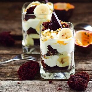 Салаты в стаканчиках, например, киноа, цезарь, нисуаз. Мороженое шоколадное, ванильное и лавандовое. Пирожное, к примеру шоколадный ганаш. Овощное ассорти и фруктовое шато в стаканчиках.