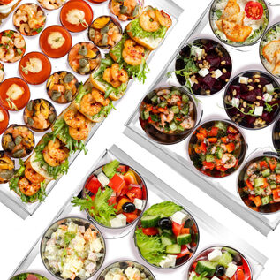 Выбирай праздничные закуски на компанию сразу. Наборы для разного количества гостей.