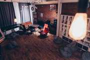 Неоновая подсветка стены, лампы дневного света, диско-шар, гирлянды дождь на окнах, лампы на зеркале