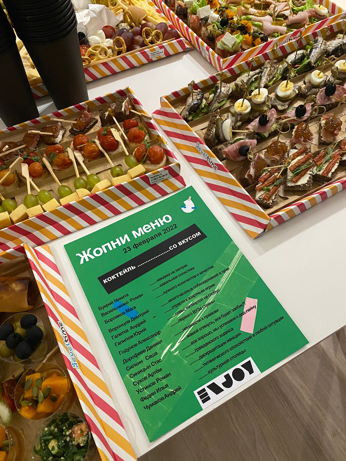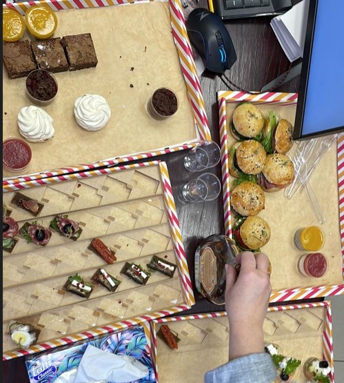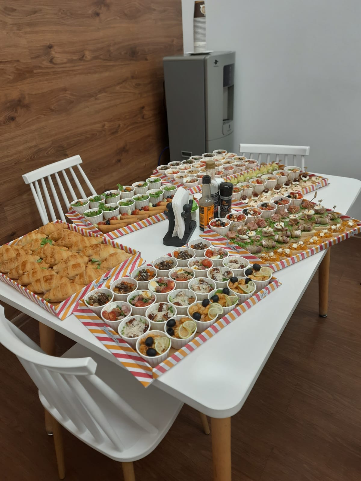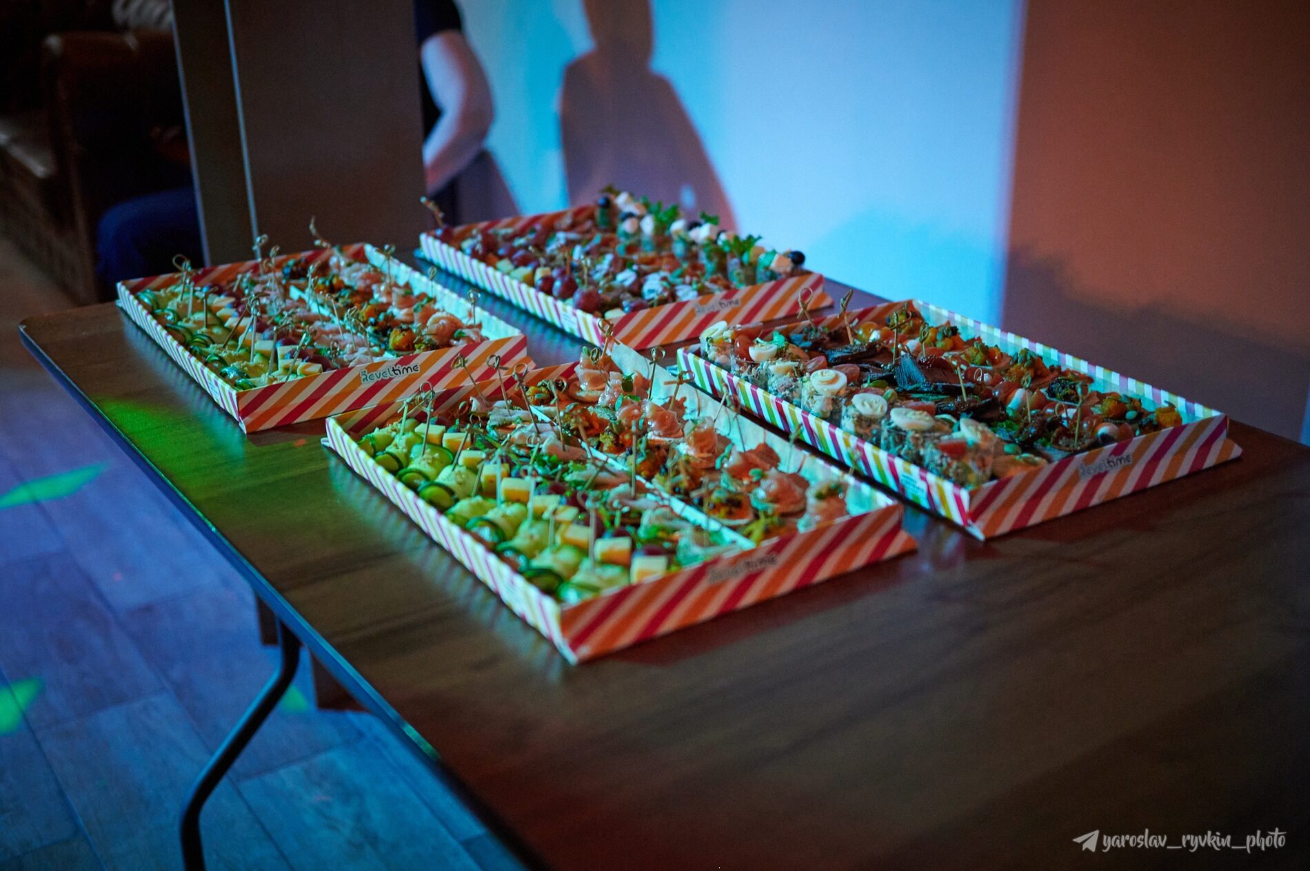 Денис: Закуски расхватали на ура, сам успел только пару штук попробовать, было очень вкусно! Отдельно порадовало что они были готовы и стояли в помещении ещё до начала аренды. Строго положительные впечатления, спасибо за вашу работу!