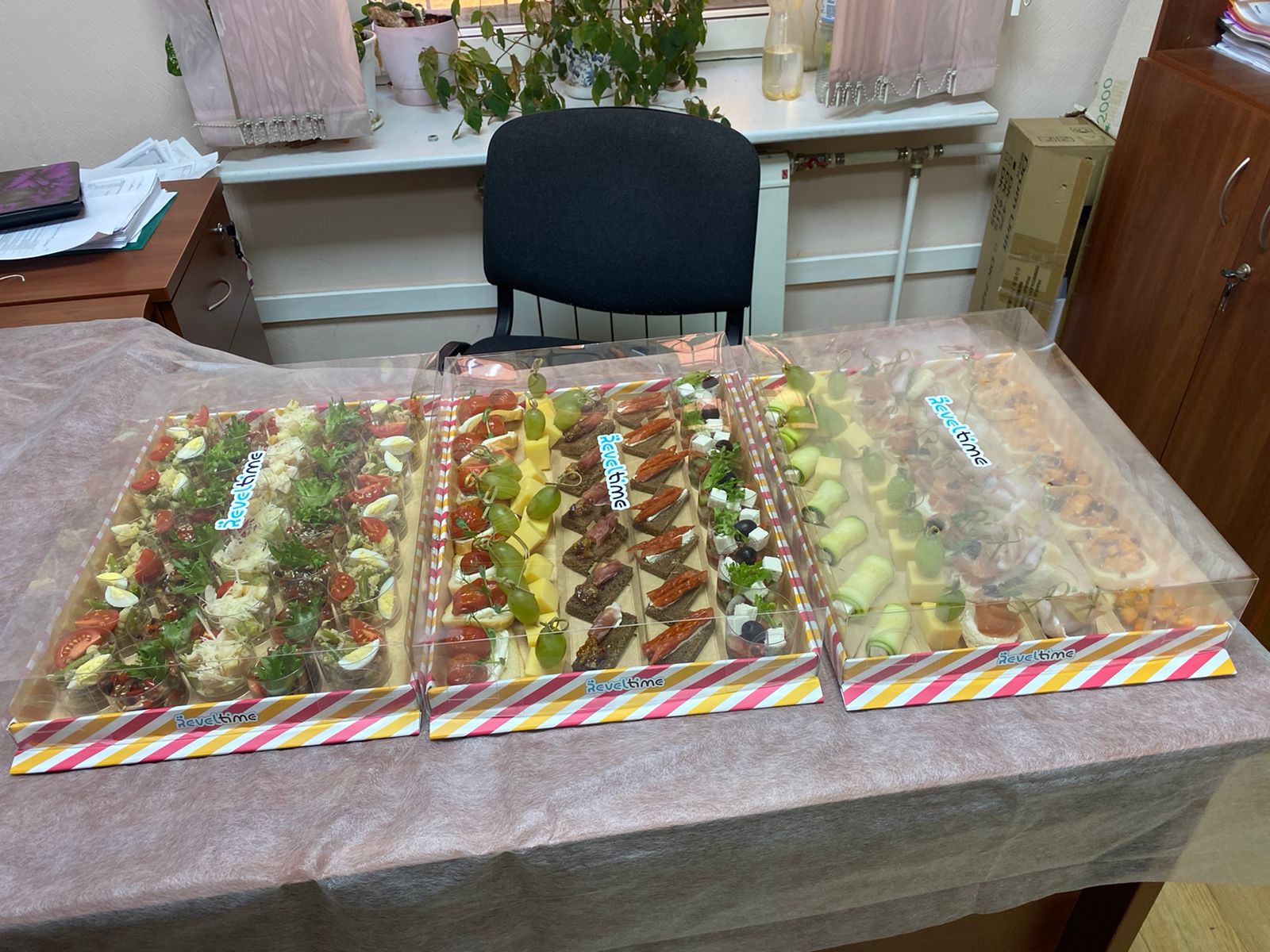 Виктория: Заказывала для празднования Дня рождения на работе. На столе смотрелось очень красиво! Коллегам и начальству очень понравилось. Особенно отметили канапе с салом))) Доставка точная. Сервис удобный!