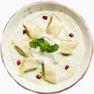 Замаринованное в специях куриное филе с начинкой из сыра, зелени и масла, обжаренное до хрустящей корочки. Подается со сливочным соусом.