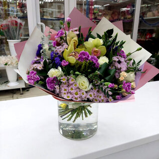 Изысканный букет с орхидеями прекрасный комплимент близкому человеку. Упаковка на ваш выбор (цвет бумаги и ленты), +200 руб. к стоимости букета.