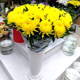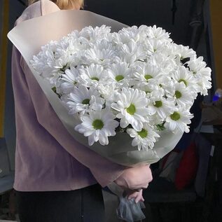 Крупные махровые соцветия хризантем отличатся обильным долгим цветением и тонким чарующим ароматом. 31 шт. в букете. Упаковка на ваш выбор (цвет бумаги и ленты), + 200 руб. к стоимости букета.