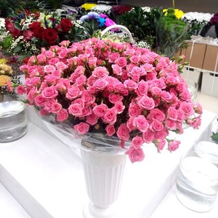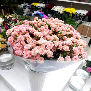 Кустовая роза Грация. 25 шт. в букете. Упаковка на ваш выбор (цвет бумаги и ленты), + 200 руб. к стоимости букета.