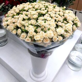 Кустовая роза Крем Грация 25 шт в букете. Упаковка на ваш выбор (цвет бумаги и ленты), + 200 руб. к стоимости букета.