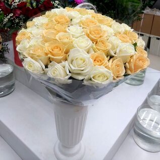 Букет из 51 цветка двух оттенков Пинч Аваланш и Аваланш белый. Упаковка на ваш выбор (цвет бумаги и ленты), + 200 руб. к стоимости букета. Букет сладкий персик