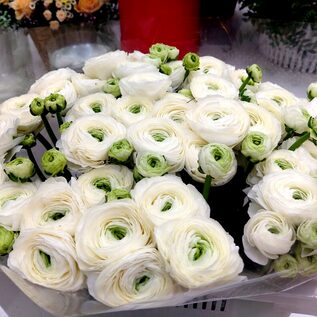 Ранункулюс один из любимых цветов невест. Удивительные цветы напоминают маленькие розочки или нераспустившиеся пионы. 25 шт. в букете. Упаковка на ваш выбор (цвет бумаги и ленты), + 200 руб. к стоимости букета.