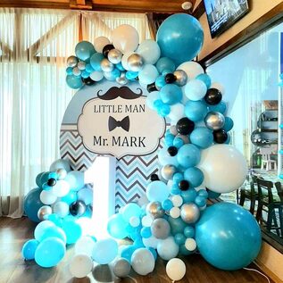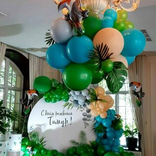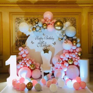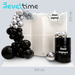 Включена: аренда, индивидуальная надпись, гирлянда шаров, зелень, монтаж демонтаж. Цена указана от
