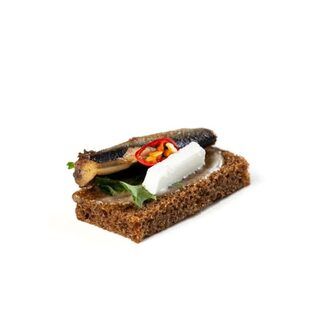 Тапас с муссом из шпрот и соленым огурцом