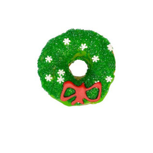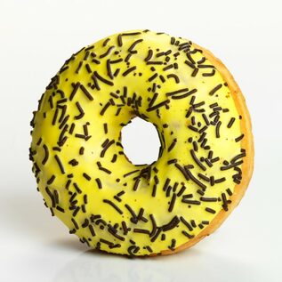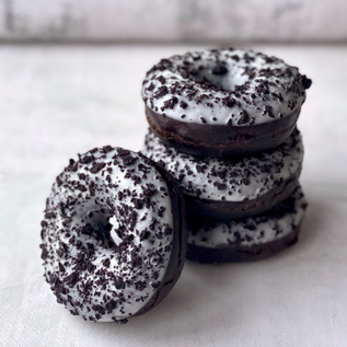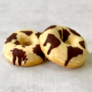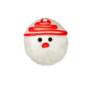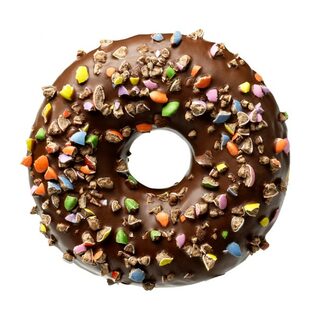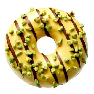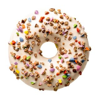Пончик с белой начинкой, белой глазурью с кусочками печенья