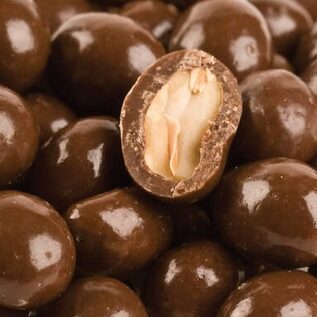 Глянцевое драже их жареного арахиса и темного горького шоколада.200 гр.
