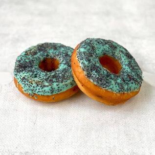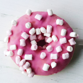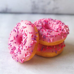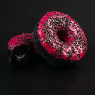 Чёрный пончик с розовой глазурью и семенами кунжута