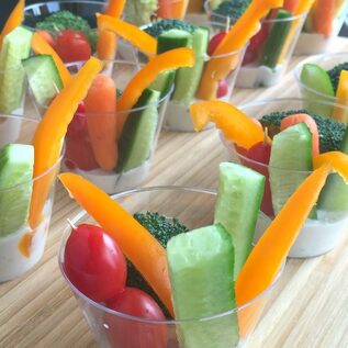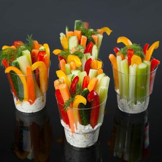 Свежие фрукты и овощи в виде канапе или в стаканчике.