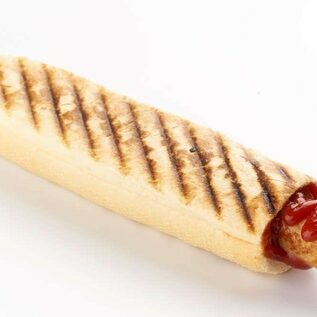 Хот-дог в классической булочке с кетчупом, соской, луком. 1 шт.