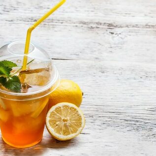 Черный чай, лимон, листья мяты, колотый лёд. 300 мл.