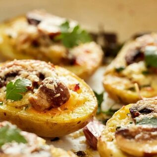 Этот гарнир готовится на решетке гриля. Подаётся ко всевозможным горячим мясным, рыбным блюдам порционно.