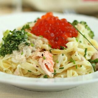 Форель, лимон, сливочный соус, икра красная соленая. 250 грамм
