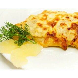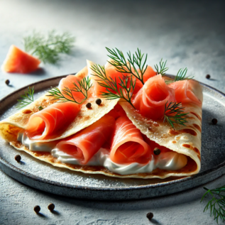 Горячая закуска, в составе которой блинный конвертик с лососем. Подается с нежнейшим икорным соусом.