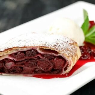 Изысканный десерт, в составе которого персики, обжаренные на гриле, с начинкой из сыра рикотта, побрызганные бальзамическим соусом. Подается порционно.