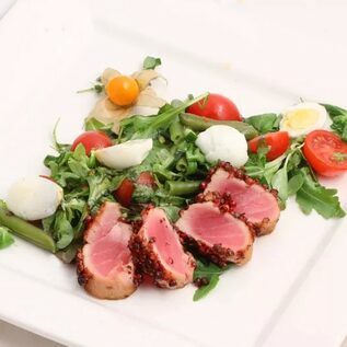 - Блюда высокого качества и кухни например такие как: салат с розовым тунцом, стейк из сёмги, овощи на гриле.