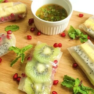 Блюдо, в котором гармонично сочетаются яблоки, груши, апельсины, мандарины, клубника, ананас, киви, а так же арбуз, дыня и виноград. Чтобы придать блюду особый праздничный вид его посыпают сахарной пудрой.
