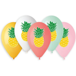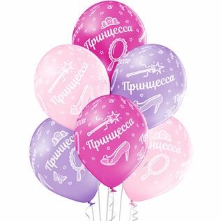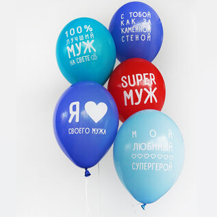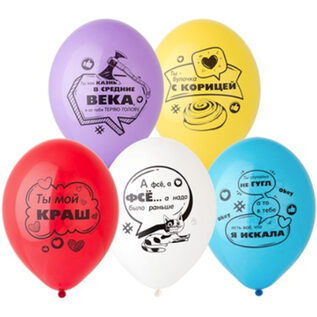Ассорти из 5 шариков: голубые, красные, розовые и фиолетовые, с рисунком, нанесенным с двух сторон.