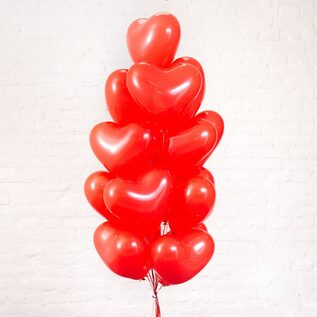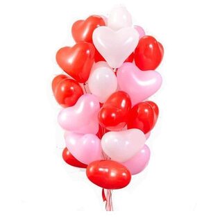В композицию входят: 5 шаров глянцевых, 2 фольгированных шара "Звезды", 2 фольгированных шара "Сердце", прозрачные шары с серпантином.