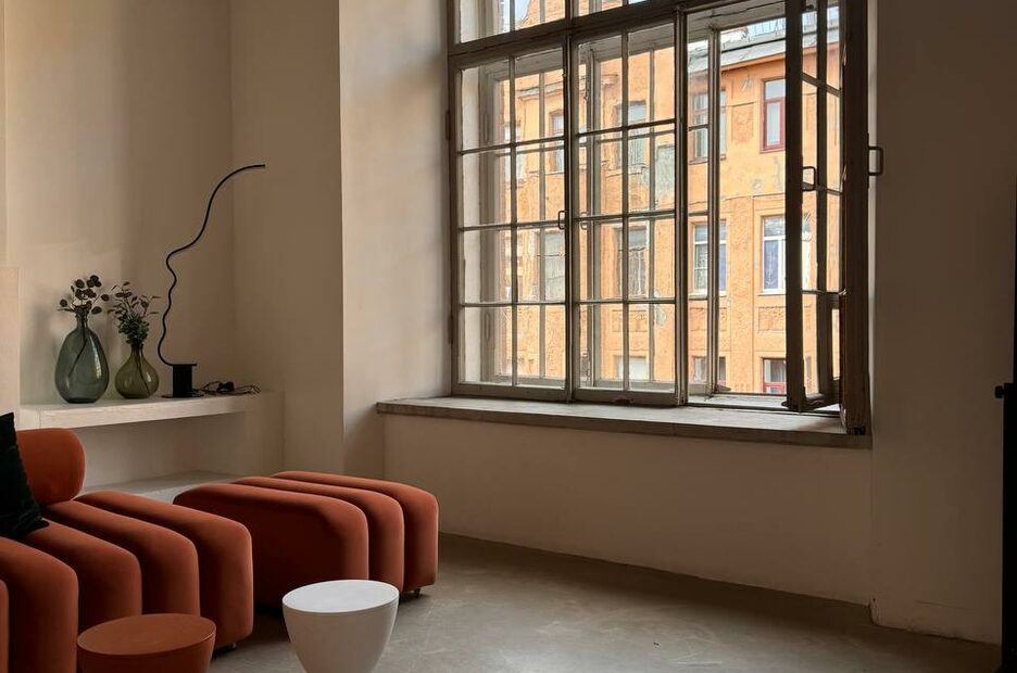 Высокие потолки 5,5 метров и два больших арочных окна наполняют зал мягким дневным светом, создавая атмосферу легкости и уюта. Здесь каждый уголок продуман для того, чтобы вы могли провести незабываемое время в кругу друзей и близких.