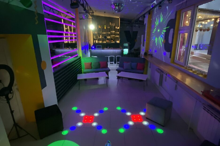 Лофт с отдельным входом и собственной парковкой полностью изолирован от внешнего мира. Пространство оборудовано всем необходимым для праздников и вечеринок: от вечеров с друзьями до дней рождения, свадеб и выпускных. Основная зона включает танцпол с диско-светом, сцену и барную стойку. Караоке-система с проектором, звуковыми колонками и микрофонами создана для музыкальных вечеров. Световое шоу из 12 приборов и дым-машина обеспечивают поддержку атмосферных событий. Удобная мягкая мебель — диваны, кресла и пуфы — формируют зоны отдыха. В распоряжении гостей — кальянная зона, настольные игры, барная посуда. Администратор помогает с настройкой света, звука, игрой и кальяном, оставаясь незаметным на посту в отдельном помещении. Есть возможность продления мероприятий, открытие проходит по графику. Вместимость — до 40 человек на концертах, 25 посадочных мест. Wi-Fi 300 Мбит/с подходит для прямых трансляций и общения. Во дворе доступна бесплатная парковка.