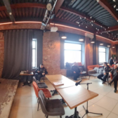 Пространство удобно меблировано: четыре дивана, три кресла и шесть журнальных столиков создают зоны для общения и отдыха. Пятнадцать столов, мягкие и лекционные стулья позволят легко адаптировать лофт под формат вашего мероприятия — от деловых встреч до масштабных вечеринок на 50 гостей.